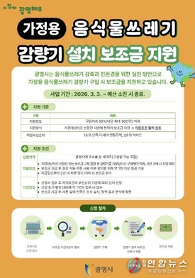 '음식물쓰레기 줄여 온실가스 잡는다' 광명시, 음식물 감량기 설치비 최대 30만 원 지원