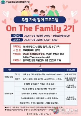 원주시 동부복합생활지원센터, 주말 가족 프로그램 '온 더 패밀리' 2기 수강생 모집