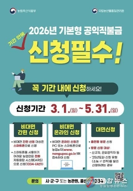 홍성군, 2026년 기본형 공익직불금 5월 31일까지 신청 접수
