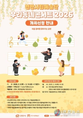 천안시립예술단, '우리동네콘서트 2026' 개최지 모집