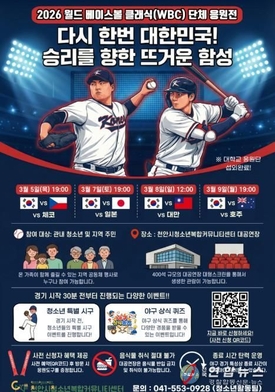 천안시청소년복합커뮤니티센터, '2026 WBC 단체 응원전' 개최