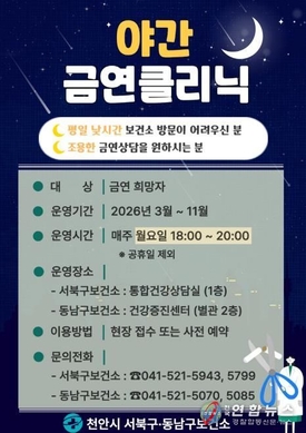 천안시, 시민 맞춤형 '야간 금연클리닉' 운영