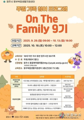 원주시동부복합생활지원센터, 주말 가족 프로그램 '온 더 패밀리' 9기 수강생 모집