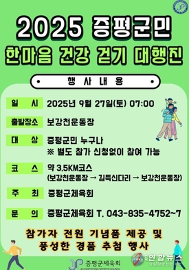 ‘2025 증평군민 한마음 건강걷기 대행진’ 27일 개최