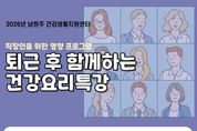 전국연합뉴스 유근택 기자 | 남원주건강생활지원센터는 직장인을 위한 영양 프로그램 ‘퇴근 후 함께하는 건강요리특강’ 참여자를 모집한다. 이번 프로그램은 대사증후군 예방·관리와 구강 청결 교육, 건강 요리 실습으로 구성되며, 오는 4월 30일 오후 6시 30분부터 8시까지 진행된다. 모집 대상은 지역 주민 10명 이내며, 신청은 4월 17일 오전 9시부터 센터 전화를 통해 선착순으로 접수한다. 자세한 사항은 남원주건강생활지원센터로 문의하면 된다.